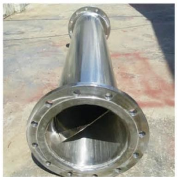 性能及結(jié)構(gòu)特點:混合器主要由殼體和芯體組成。殼體由無縫鋼管或鋼板及連接法蘭組成,芯體由三個混合件交錯90°聯(lián)接而成,每個混合元件有四片彎折26°34'的交叉組成。GJQ 型靜態(tài)混合器依靠液體自身具有的功能,通過混合元件對液體切割分流、交叉混合和旋轉(zhuǎn)作用,使流經(jīng)液體得到 快速充分的混合。水頭損失為0.3~0.8米,液體流速為0.6~1.OM/S。